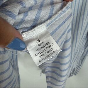 Essue Striped Coastal Beach Linen Like Material Button Down Top Summer Vacation