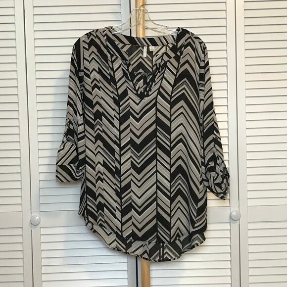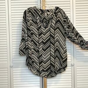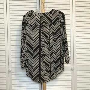 Est 1945 Chevron Sheer V-Neck Long Sleeves Blouse M