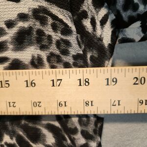 Add a touch of playful elegance to your wardrobe with this Est 1946 long sleeve blouse. The black color and animal print design make it a versatile piece for any occasion. The blouse is made for women in a regular size medium and features long sleeves.