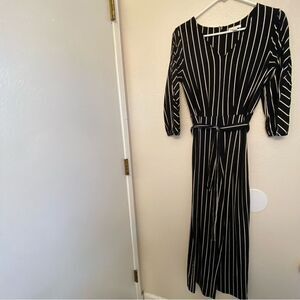 Est 1946 Black & White Striped Jumpsuit unitard cold shoulder long sleeve-xs