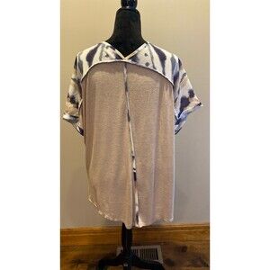 Est. 1946 Blouse Sz Large Oversized Flowy Creams & Blues Casual Top Cap Sleeves
