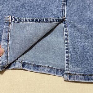 Timeless and versatile denim skirt from Est. 1946. Features a flattering straight silhouette with front and back pockets, a button and zip closure, and a comfortable mid-length hem. Easy to dress up or down—pair it with tees, blouses, or sweaters for year-round wear! Good pre owned condition. See photos for measurements to ensure proper fit.