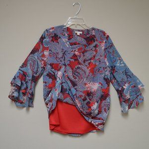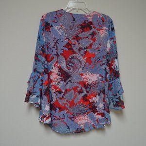 Est. 1946 Lined Print V-Neck Blouse with 3/4 Length Ruffle Sleeve - Size L