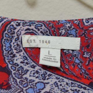 Est. 1946 Red Lined Blue/Red Print V-Neck Blouse