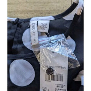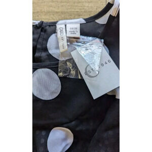 Est. 1946 Polka Dot Blouse Sz 14/16 Black Long Sheer Flouncy Sleeve Ruffled NEW