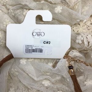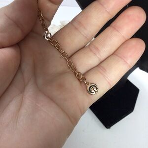 - brown braided cord with adjustable length lobster claw clasp closure and signature logo charm.