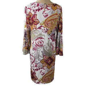 Est. 1946 Swing Dress Paisley Bell sleeve Stretch Mustard Maroon Size M Medium