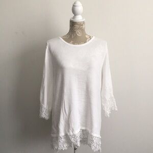 Lace around bottom hem and end of sleeves