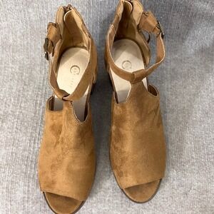 Est 1946 Women's Brown Faux Suede Peep Toe Ankle Strap Heeled Sandals Size 10