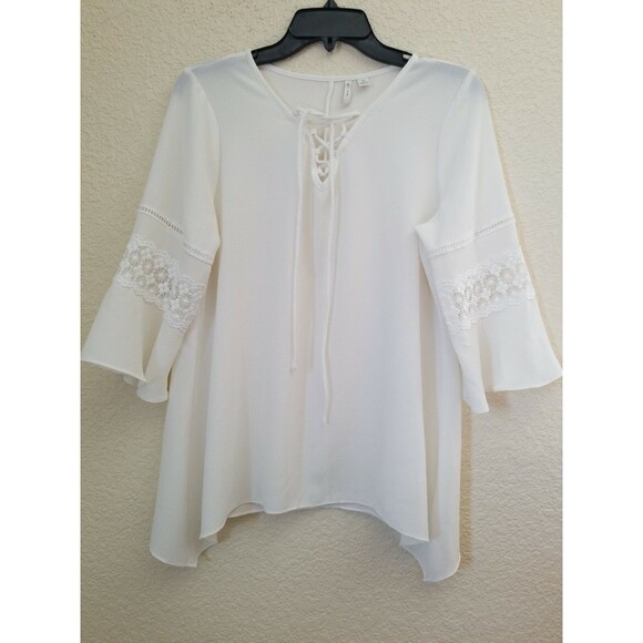 Est 1946 Womens Size Medium Top Blouse Bell Sleeve Tie Front NWOT Ivory color