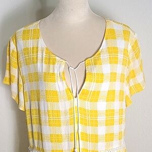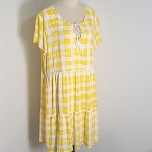 Est 1946 Yellow & White Plaid Dress, Short Sleeves, Ruffle Around Bottom Size XL