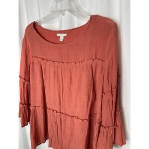 Established 1946 Est blouse shirt top women’s size large apricot dark beach boho bohemian with built-in cami. Pictures of the material and care tags are available in the listing.