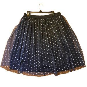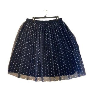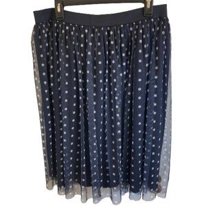 Est.1946 Midi Skirt Pleated Navy Polka Dot Circle with Mesh Overlay, size Large
