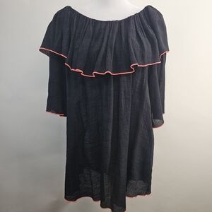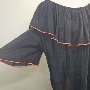 Est.1946 black with pink trim Peasant blouse. Size 18/20W. elastic around shoulders.