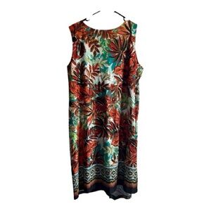 Step out in style with this vibrant floral V-neck dress. The rich blend of red, green, and brown hues makes it a standout piece for any occasion. Size 1X sleeveless dress in great condition. Please see attached photos for more details.