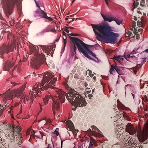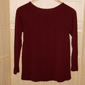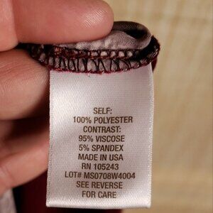 Established 1962 women’s maroon floral stretchy back silky front top small. Gently used condition. Measurements are: 26 ½" sleeve, 25 ½" from shoulder to hem, and 18 ½" from armpit to armpit