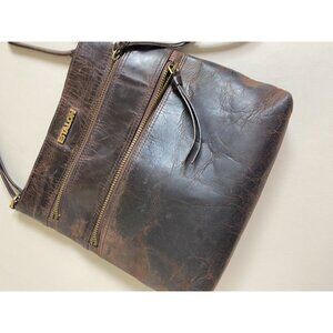 Estalon Brown Leather Crossbody Bag Zip Adjustable Strap OS 9"X 9" Boho Rustic