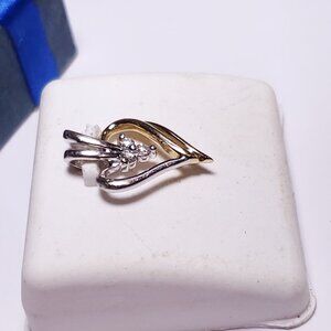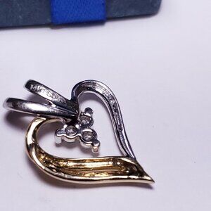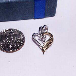 Estate .09ctw Natural Round Diamond 2Tone 14Kt Gold Open Heart Pendant #21008