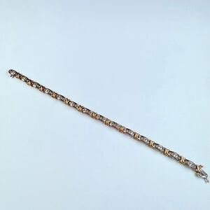 Estate 10K Solid Two Tone Gold 1.4 CT Natural Diamond X Bypass Tennis Bracelet