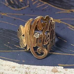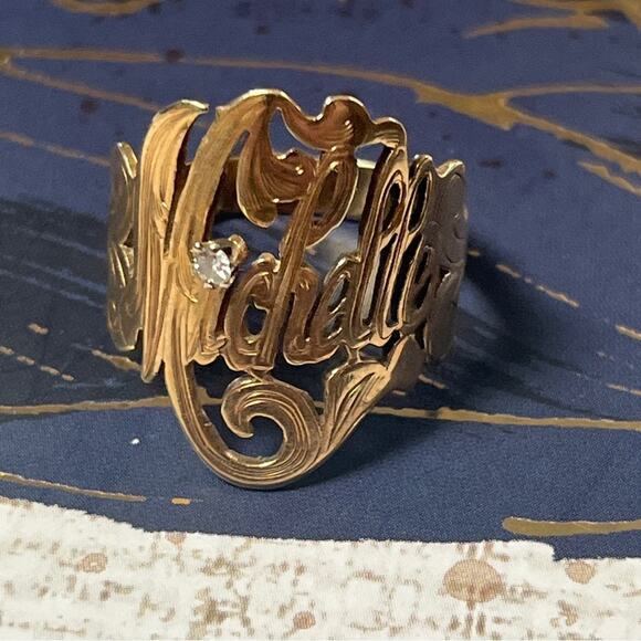 Estate 10k Gold and Diamond Large Personalized MICHELLE Name Ring D2