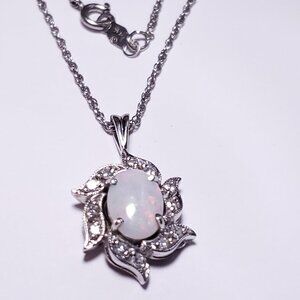 White Gold. This Beautiful Estate Opal & Diamond Necklace is priced in our store