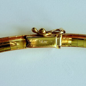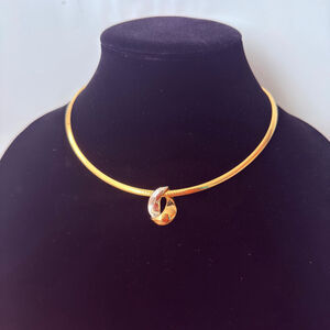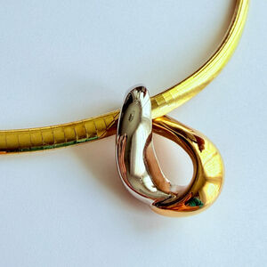 Estate 14K Yellow Gold Gooseneck Half Round Necklace Two Tone Modernist Pendant