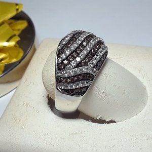 Estate 1.5ctw Round Chocolate & White Diagonal CZ Sterling Silver Dome Ring17003