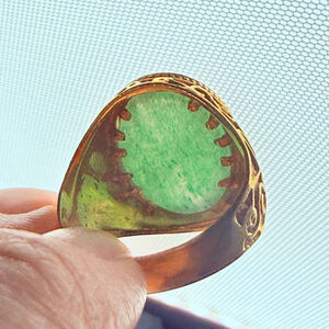 Estate 18K Solid Yellow Gold Mens Natural Jade Signet VTG Antique Scroll Ring