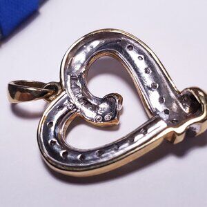 Estate .25ctw Natural Rd/Bag Diamond Polished 10Kt YG Open Folds Heart Pend22718