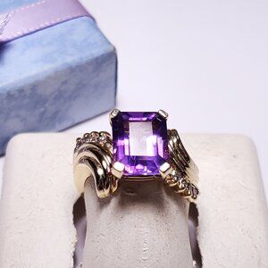 Estate 3.85ctw Natural Amethyst & Diamond curved shrimp sides 14Kt YG Ring#23070