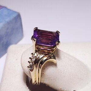 & IE inside shank) 14Kt Yellow Gold. This Bright, Bold Amethyst