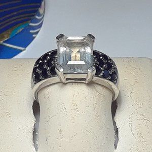 Estate 4ctw Emerald Cut White Quartz & Onyx sides Sterling Silver THL Ring#17782