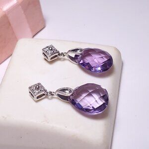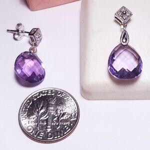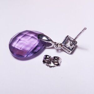 Estate 4ctw Natural 2Sided faceted Amethyst & Diamond 10Kt WG drop Earrings22858