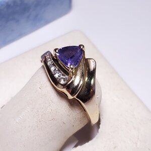 Estate .75ctw Natural Trillion Tanzanite &Diamond Magicglo 14Kt Y/Gold Ring22848
