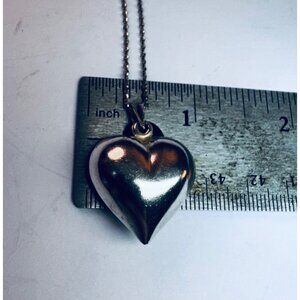 Bring home a timeless classic with this elegant estate 925 sterling silver heart pendant necklace. The design features a beautifully rounded, puffy heart charm with a smooth high-polish finish that reflects light beautifully. Suspended from a fine sterling silver chain, this piece offers a romantic, vintage-inspired look perfect for everyday wear or gifting.