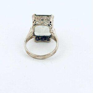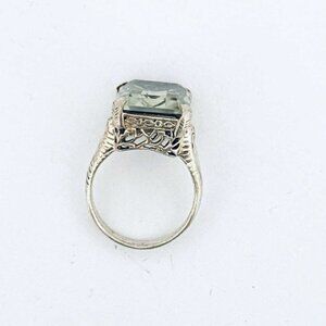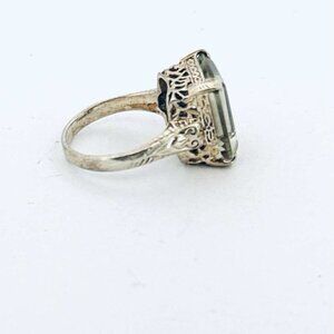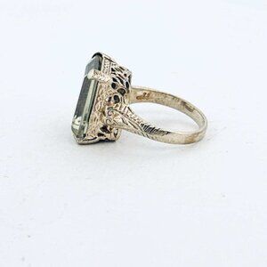 • Estate Art Deco Sterling Silver 925 Green Amethyst Filigree Ring 6.4g India