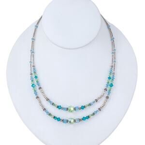 Estate Artisan Sterling Silver 925 Blue Green Crystal Beaded Necklace 16.5"