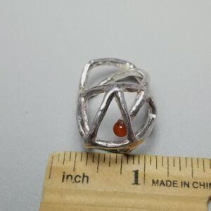 Estate Atelier Shinji Signed Silver and Red Geometric Cocktail Ring, Size 6 Band