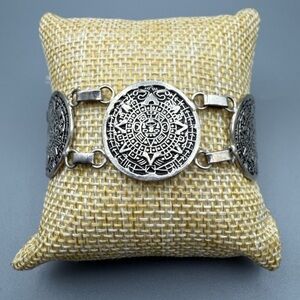 Estate Aztec Sterling Silver Medallion Bracelet 24 GRAMS