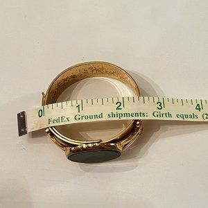 Estate Brass Cuff Hinged Bangle with Big Bold Green Goldstone — Excellent Used