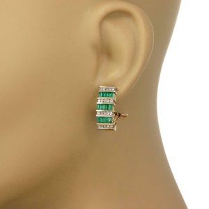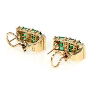 Estate Diamond Emerald 14kGold 8.5mm Wide Earrings