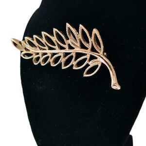 Estate EMMONS Feather Brooch Pin Open Work Leaf Filigree Blonde Gold Tone MCM