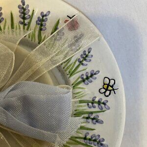 Design and Theme Details: Whimsical lavender-themed artwork evokes a serene, nature-inspired vibe; the dish showcases buzzing bees, fluttering butterflies, and blooming lavender flowers in soft purple hues, perfect for farmhouse, cottagecore, or botanical decor.