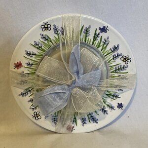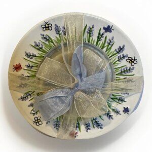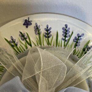 Vintage Estate Find Hand-Painted Lavender Soap Dish with Artisan Bar Soap Gift Set: Charming soap dish featuring delicate hand-painted designs of bees, butterflies, and lavender sprigs, paired with a matching artisan bar soap for a delightful bathroom or gift ensemble.
