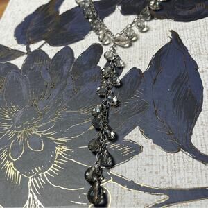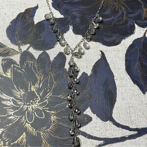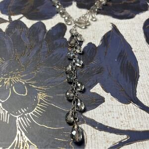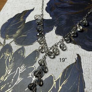 Estate Long Silver Chain and Gray Faceted Teardrop Crystal Necklace Pretty D1