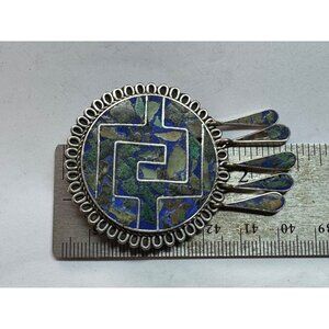Estate Mexican Sterling Silver 925 Azurite Malachite Inlay Brooch Pin Pendant 15