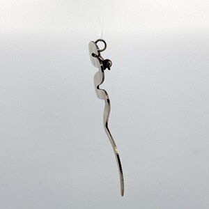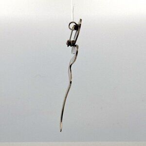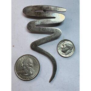 This estate modernist brooch–pendant combination features a bold, freeform spiral design crafted in solid sterling silver (.925). Measuring approximately 77.5 mm (3.05 inches) in length and weighing 15.7 grams, this versatile piece can be worn as either a pin or a pendant, offering flexible styling options. The sleek, fluid zigzag shape reflects a mid-century modern aesthetic, making it a perfect statement accessory for lovers of unique vintage jewelry. Hallmarked “925” on the reverse, ensuring sterling silver content. Ideal for collectors or as a distinctive gift.