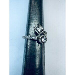 Estate Pandora Sterling Silver 925 Two Stone Halo Crossover Ring Size 4.5 Vintag