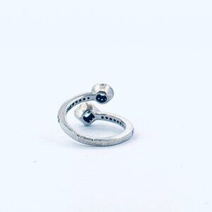 • Estate Pandora Sterling Silver 925 Two Stone Halo Crossover Ring Size 4.5 Vintage