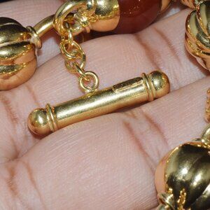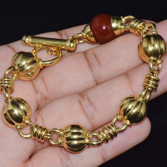 Estate Primavera Preziosi Italian Solid 18K Gold Carnelian Bead Toggle Bracelet
